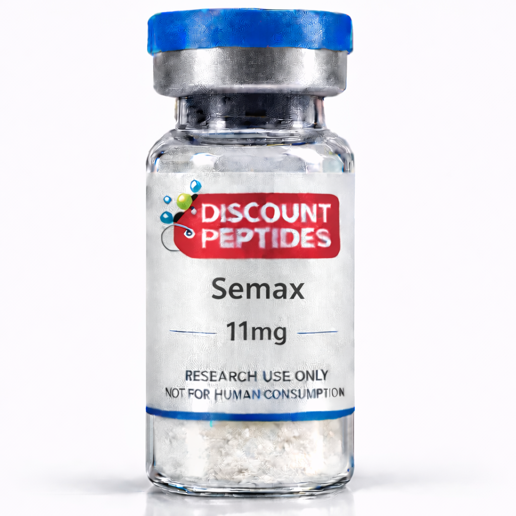 Each vial contains 11mg of Semax supplied as a lyophilized powder intended for laboratory research use.